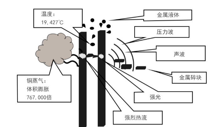 圖1-1銅排之間產(chǎn)生的電弧及其效應(yīng)